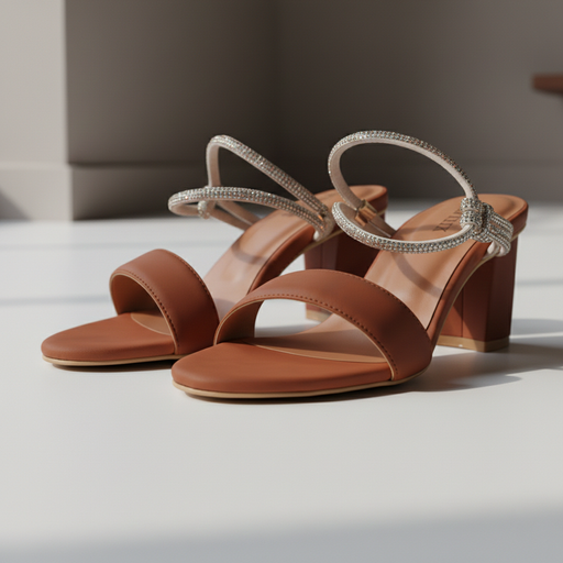 Make a bold yet elegant statement with the Elegant Brown Block Heel with Crystal Ankle Strap. Designed in a rich red satin finish, this chic sandal features a sparkling crystal-embellished ankle strap that adds just the right amount of glamour.