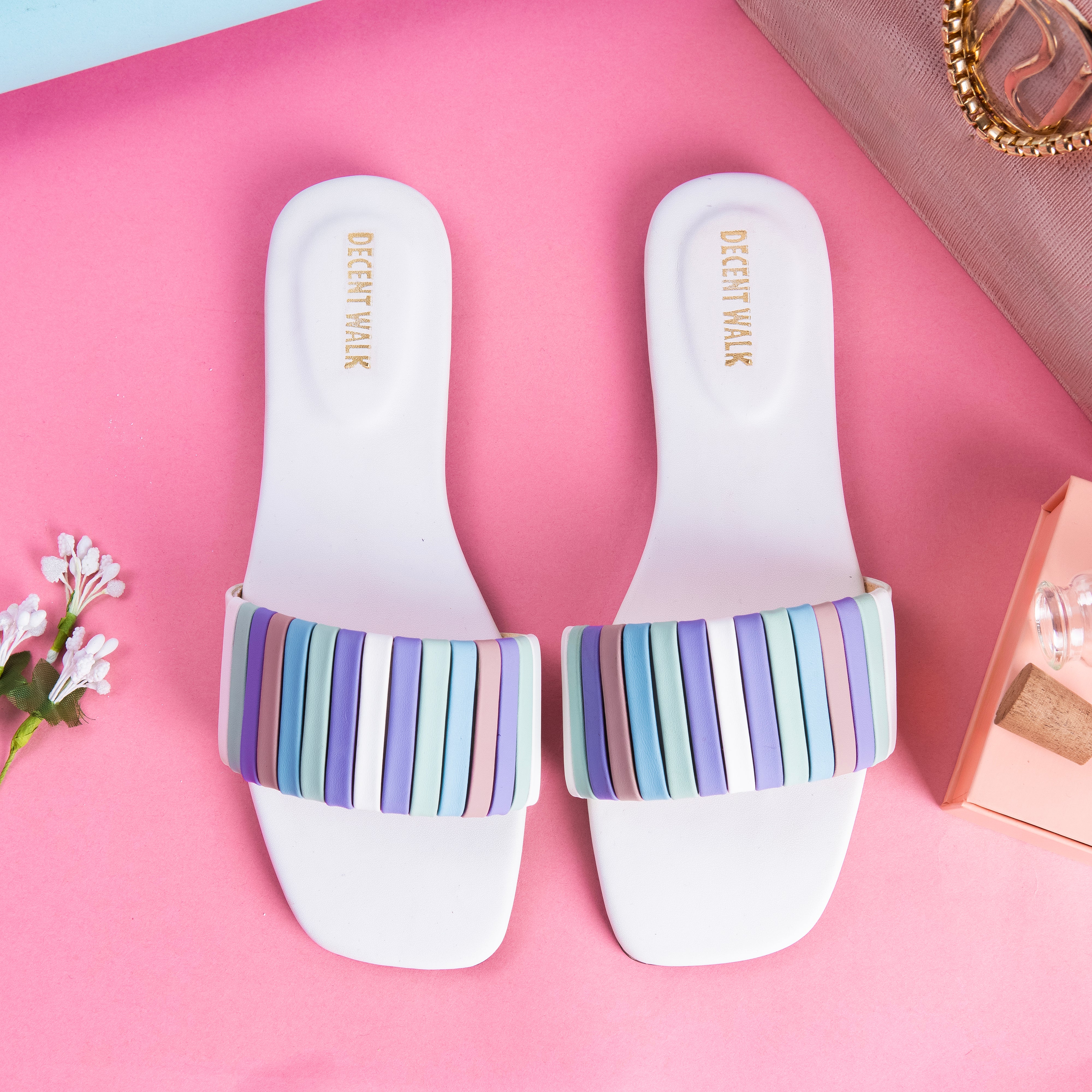 Step into vibrant comfort with the Multicolor Stripes Casual Flats, a perfect blend of casual elegance and modern flair. Designed for the fashion-forward individual, these flats feature a bold, multicolored striped strap that adds a fun and stylish touch to any outfit.